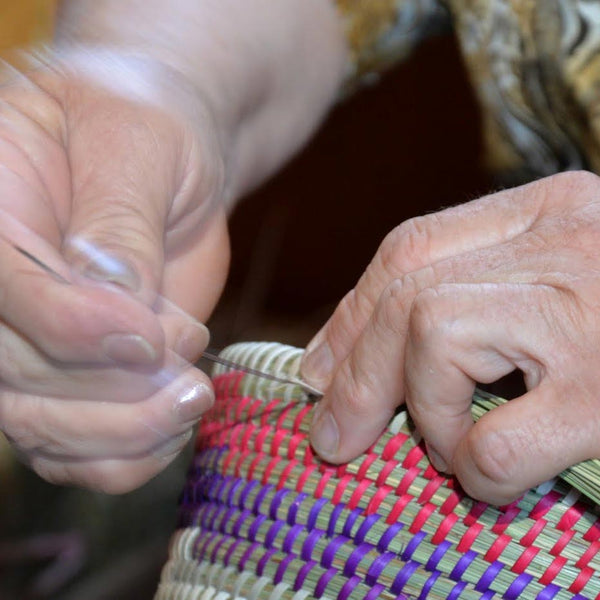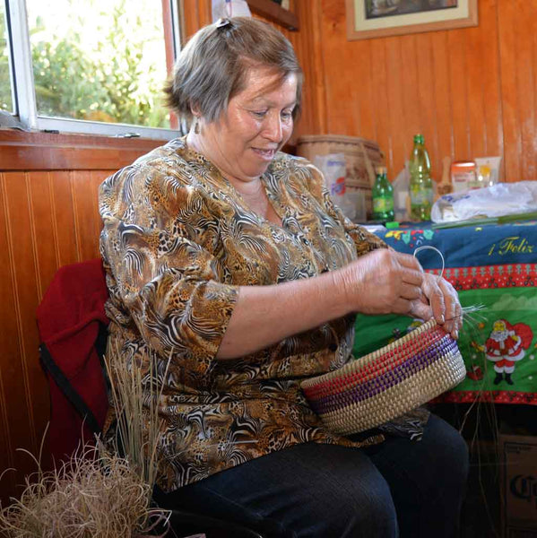 Ivonne, is one of very few remaining basket weavers from a small village on the banks of the river Bío Bío in Central Chile. She continues to harvest 'coirón' and 'chupón', two indigenous fibrous plants found in local native woodlands and pastures, which she then strips, washes and dries, before weaving tightly together to form sturdy, utilitarian baskets, decorated with characteristically brightly-colored strips.